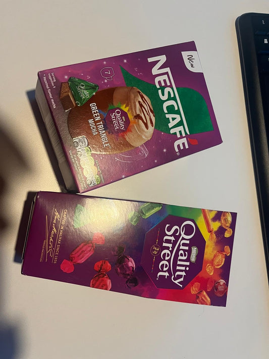 *BRITISH GOODS* Quality Street & Mocha selection. Enjoy Quality Street chocolate with a Nescafe Green Triangle Mocha. Imported from UK/England/Britain