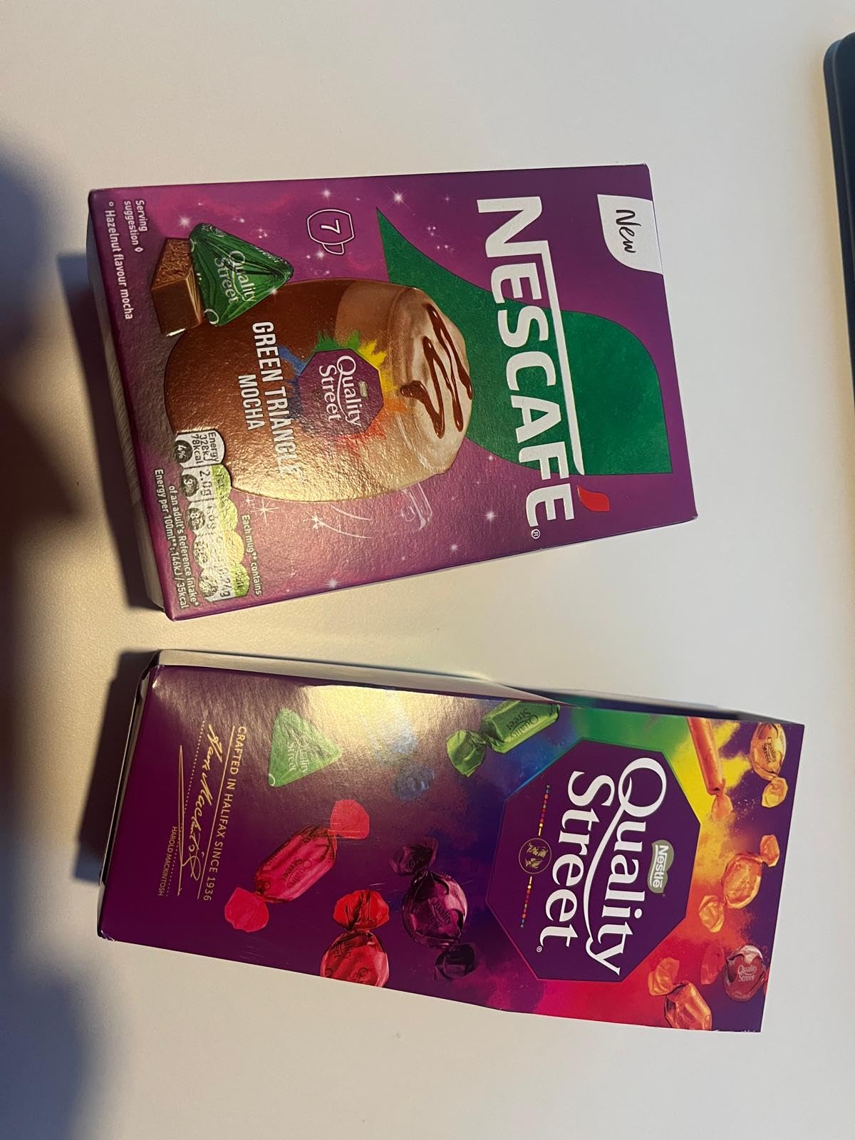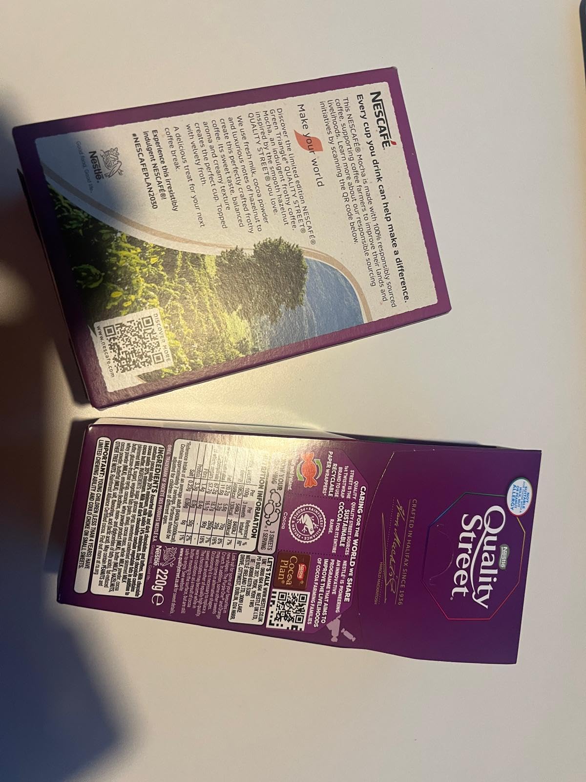 *BRITISH GOODS* Quality Street & Mocha selection. Enjoy Quality Street chocolate with a Nescafe Green Triangle Mocha. Imported from UK/England/Britain